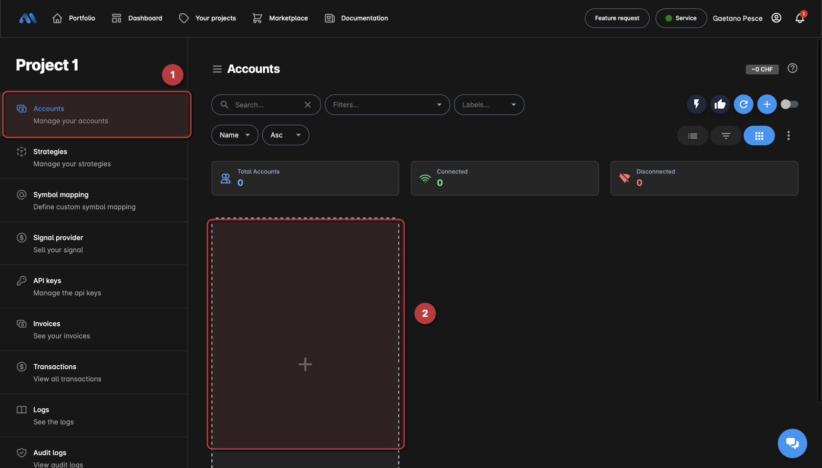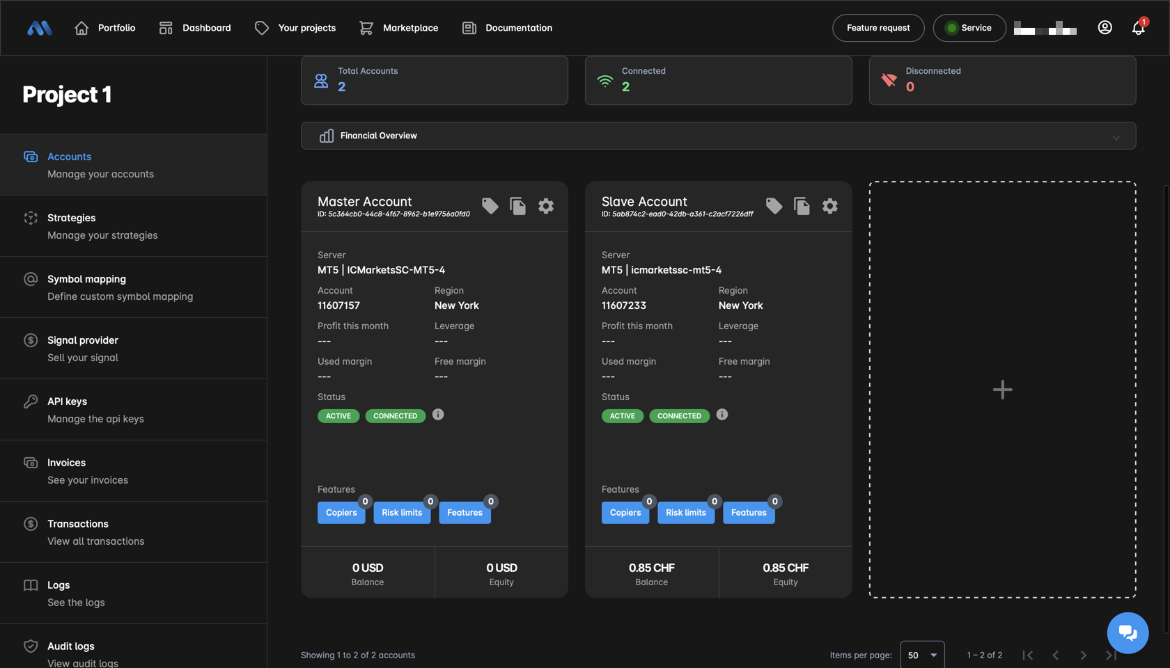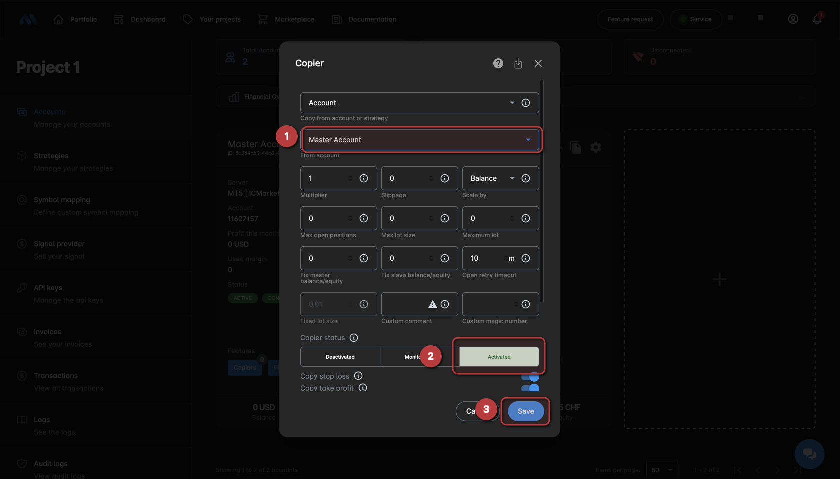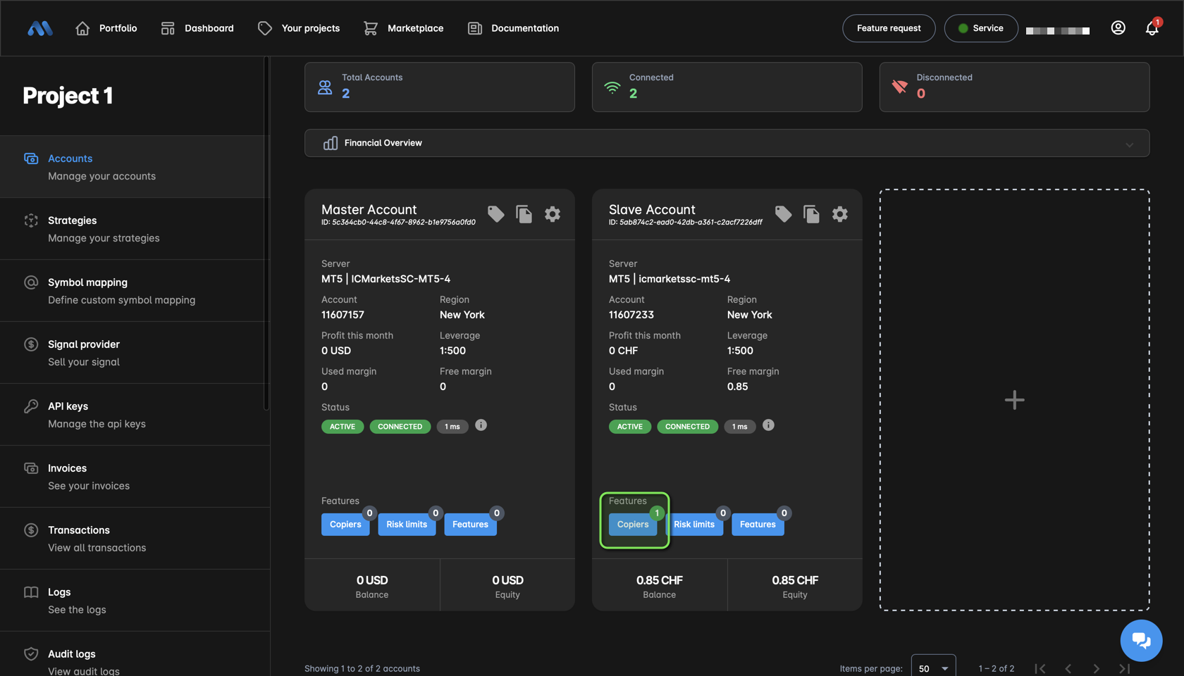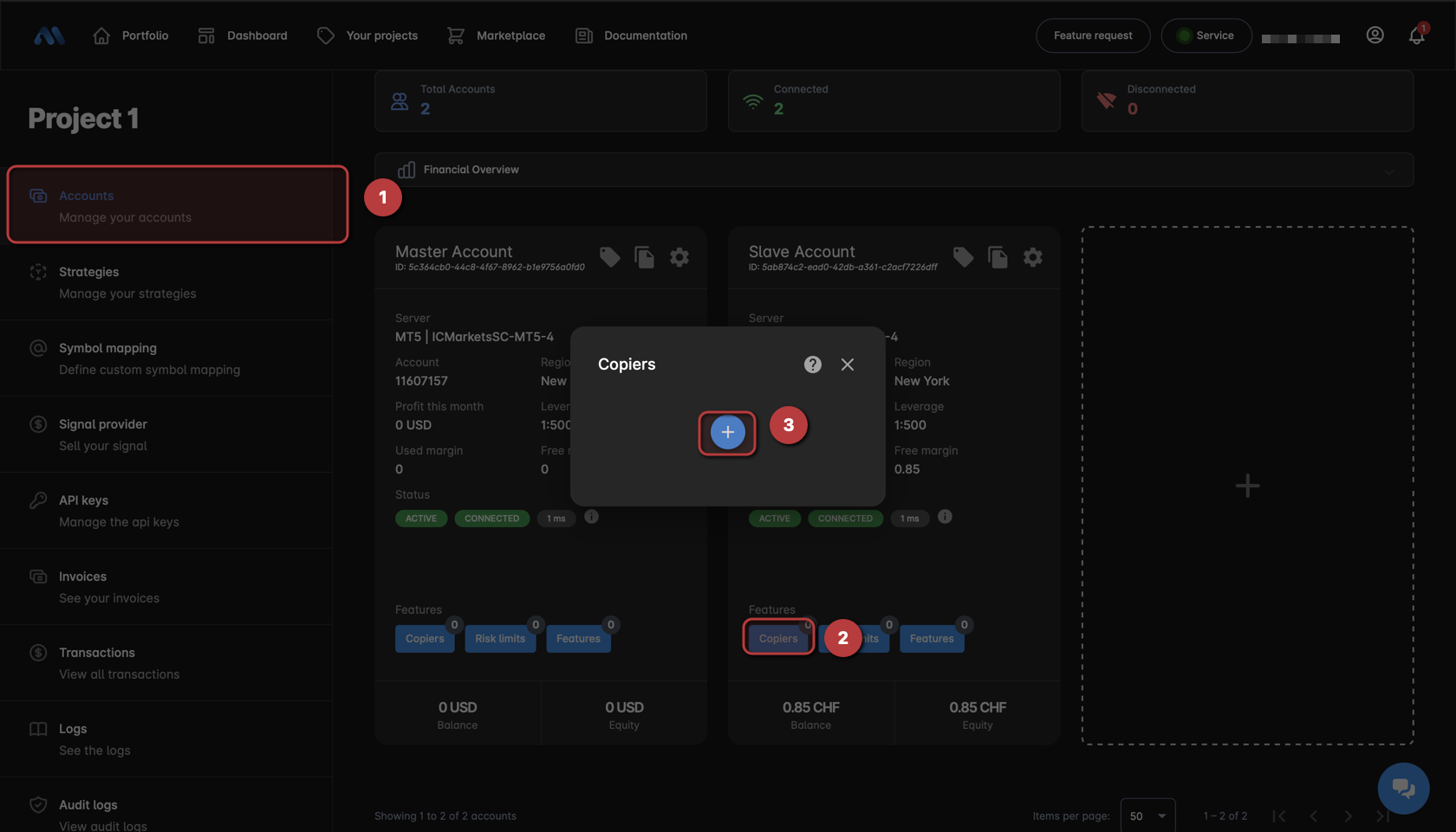 1. Now that you have two accounts you can create your first copier, for that please follow the next steps