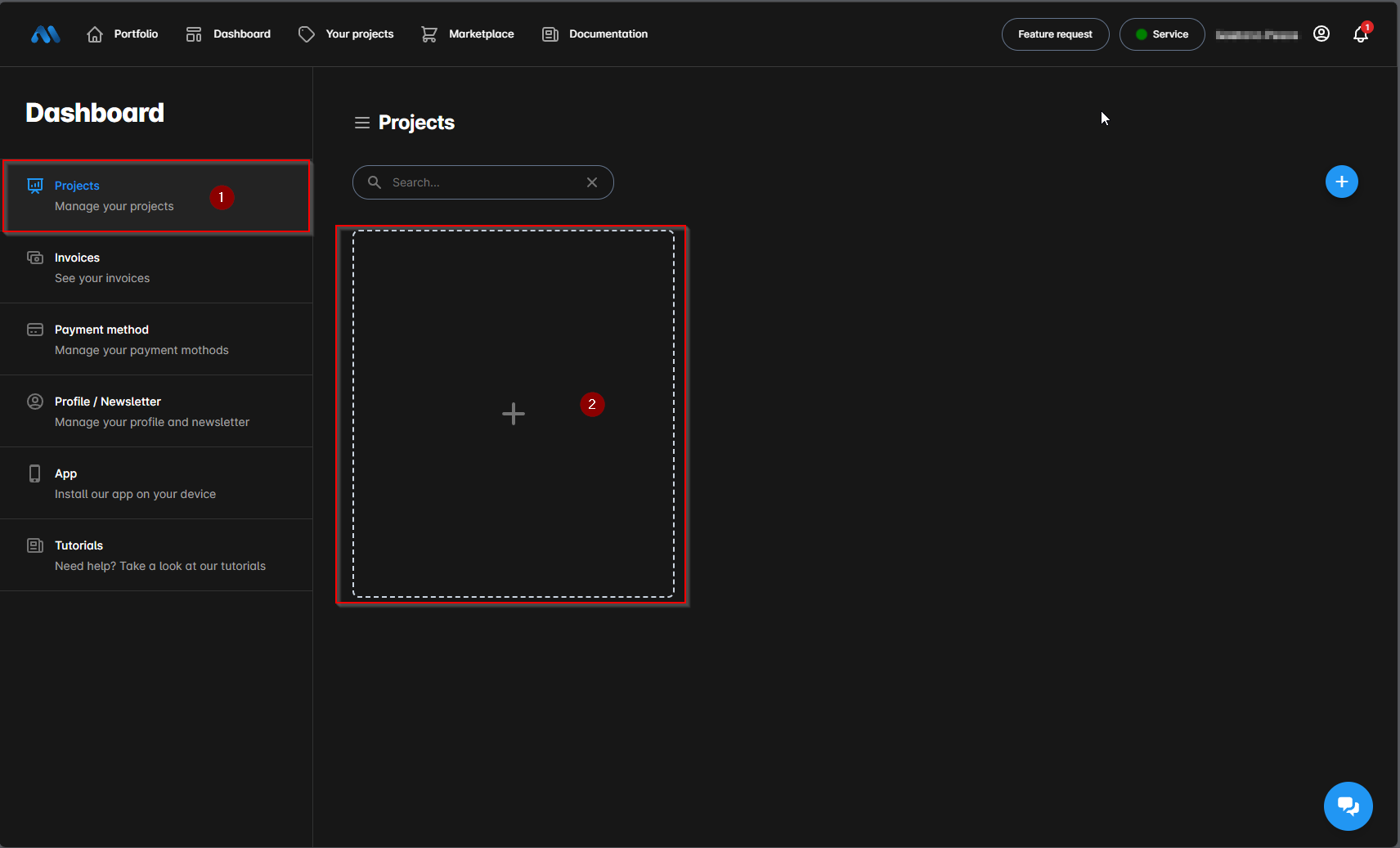 1. A new window will open. Confirm that you are on the 'Projects' section, which you can verify on the left side of the screen.&#x20;