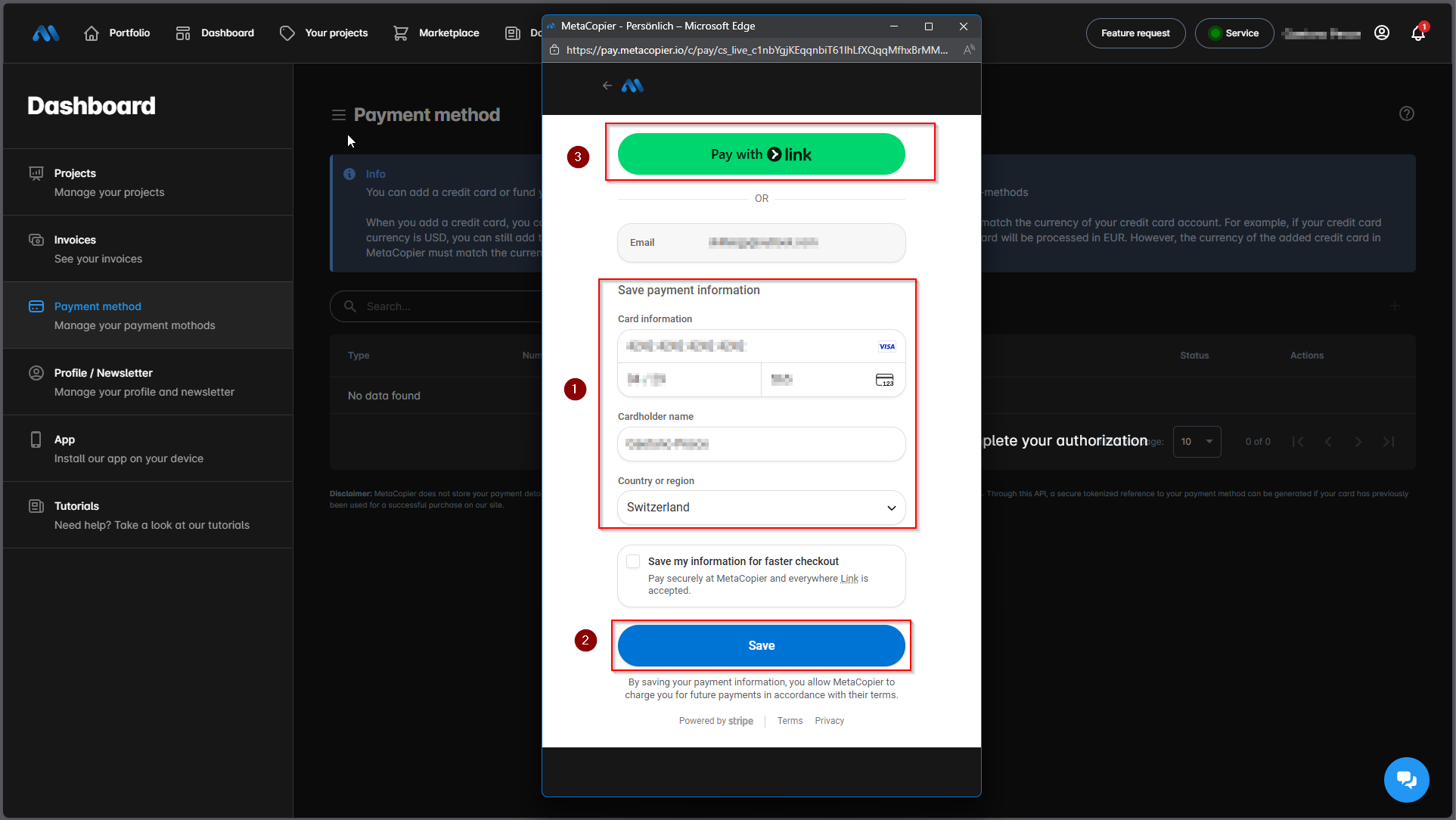 3. Or you choose to pay with link