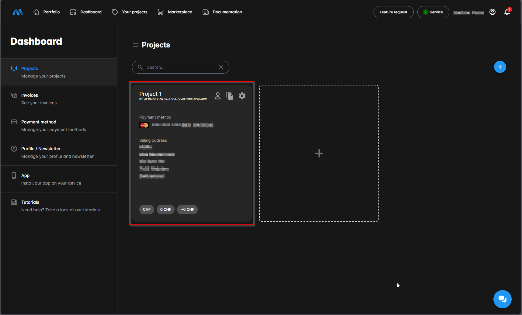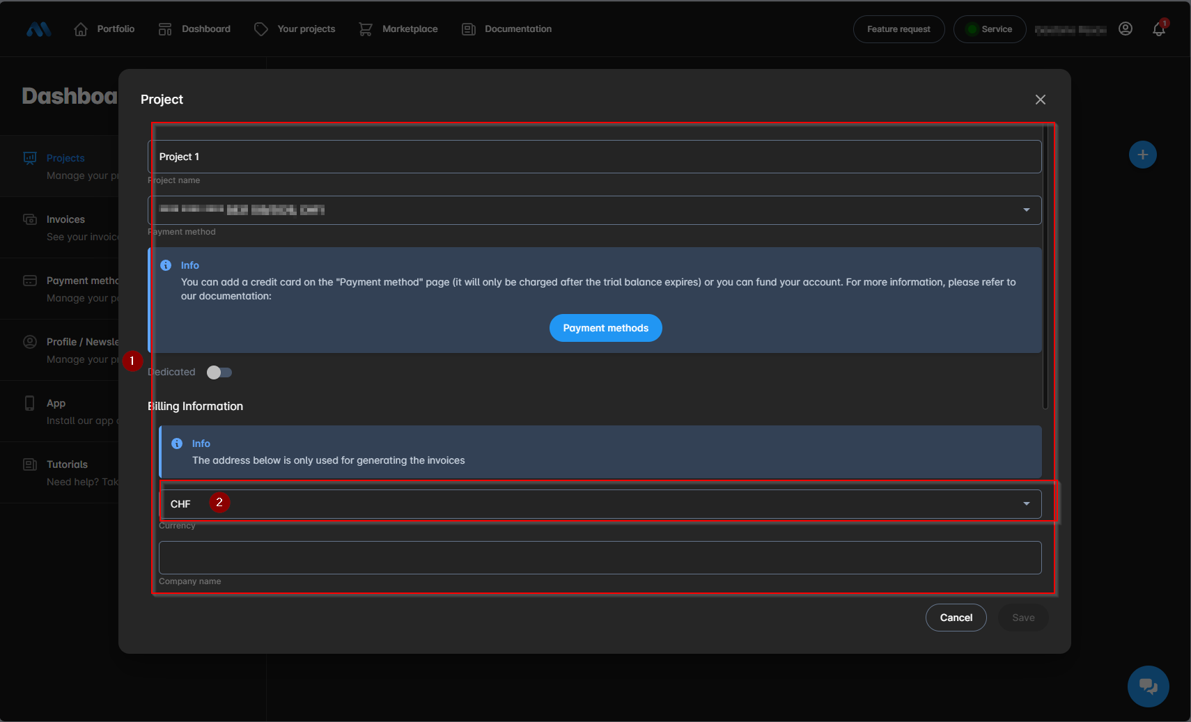 1. Now you need to input all your information in the new window like the Project Name and the Credit Card. Note that the company name is optional