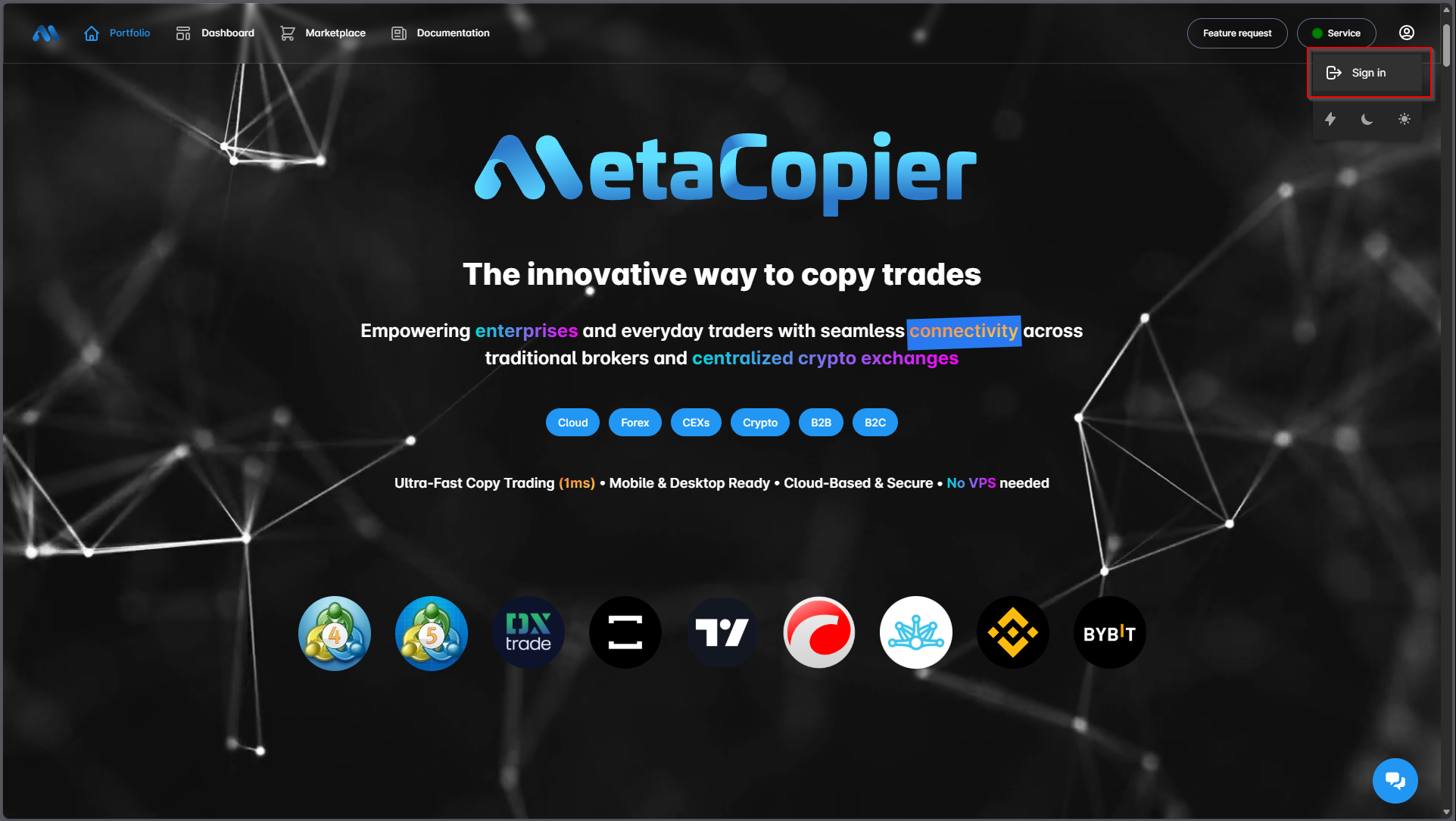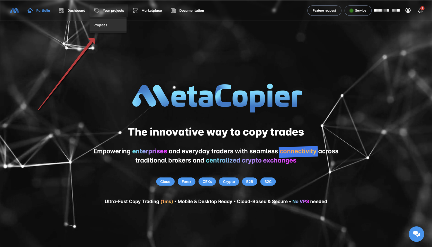 MetaCopier.io is a cloud solution to copy trades between your trading accounts. Please follow these steps to sign up, create a project, connect your trading accounts, and start copying trades. If you prefer, we also offer a video tutorial.