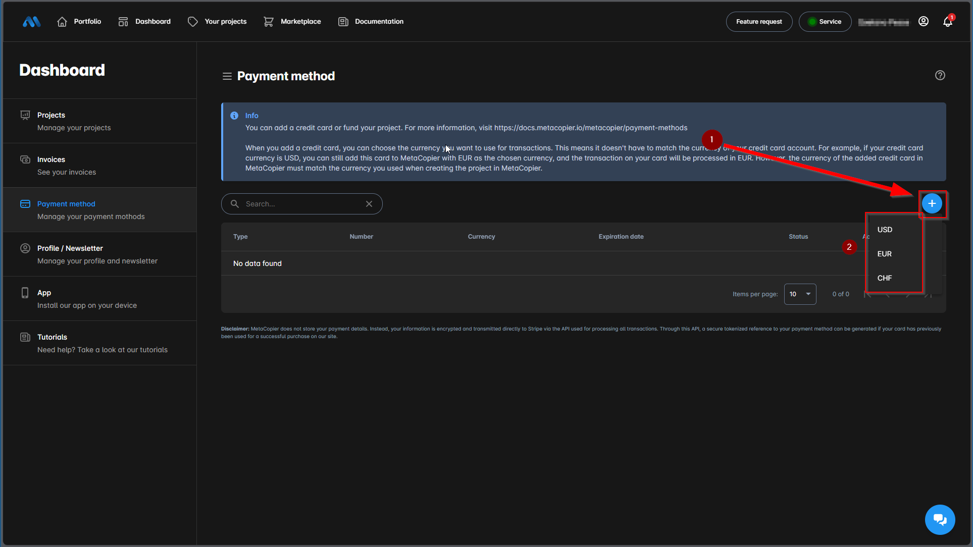 2. the currency must match the payment method.